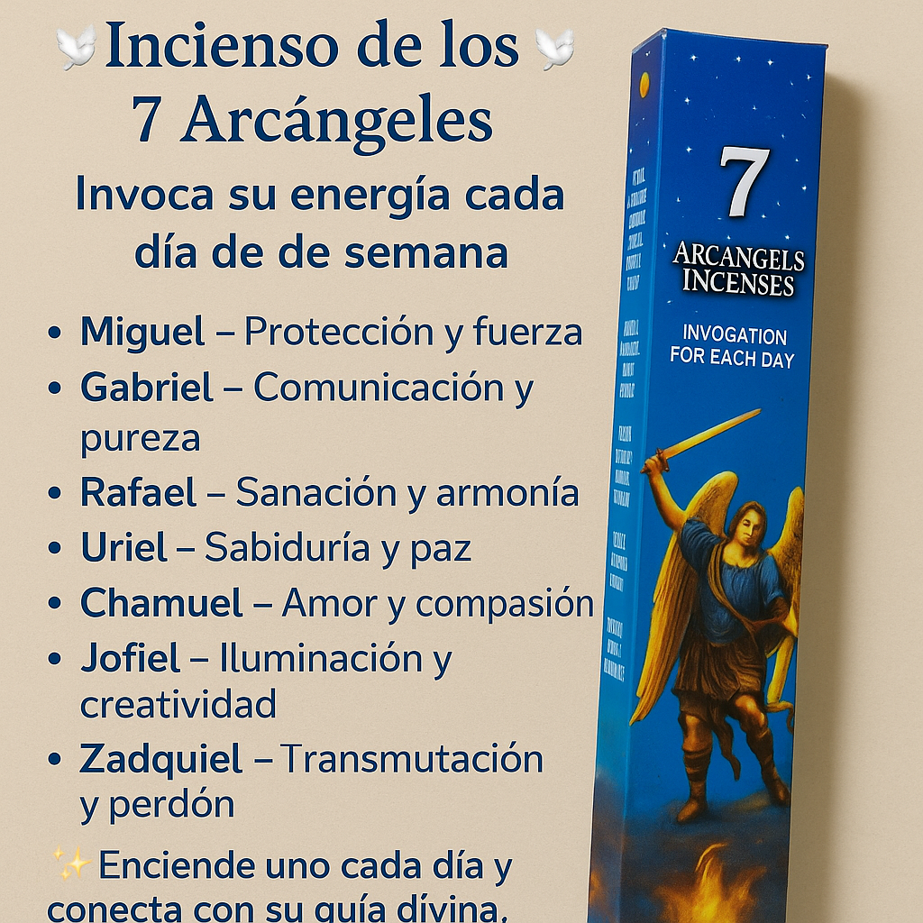 Debido a ello su ritual es encender cada varilla de incienso de Arcángel su día correspondiente para fortalecer todo lo deseado una vez realizado el ritual si de sea potencia algo en concreto solo encender esa varilla del Arcángel deseado el día que corresponde