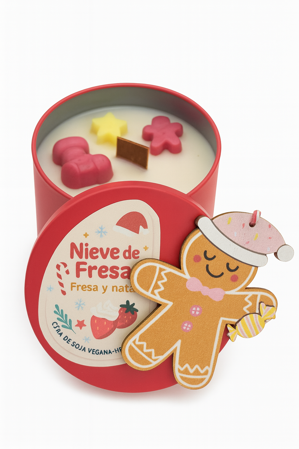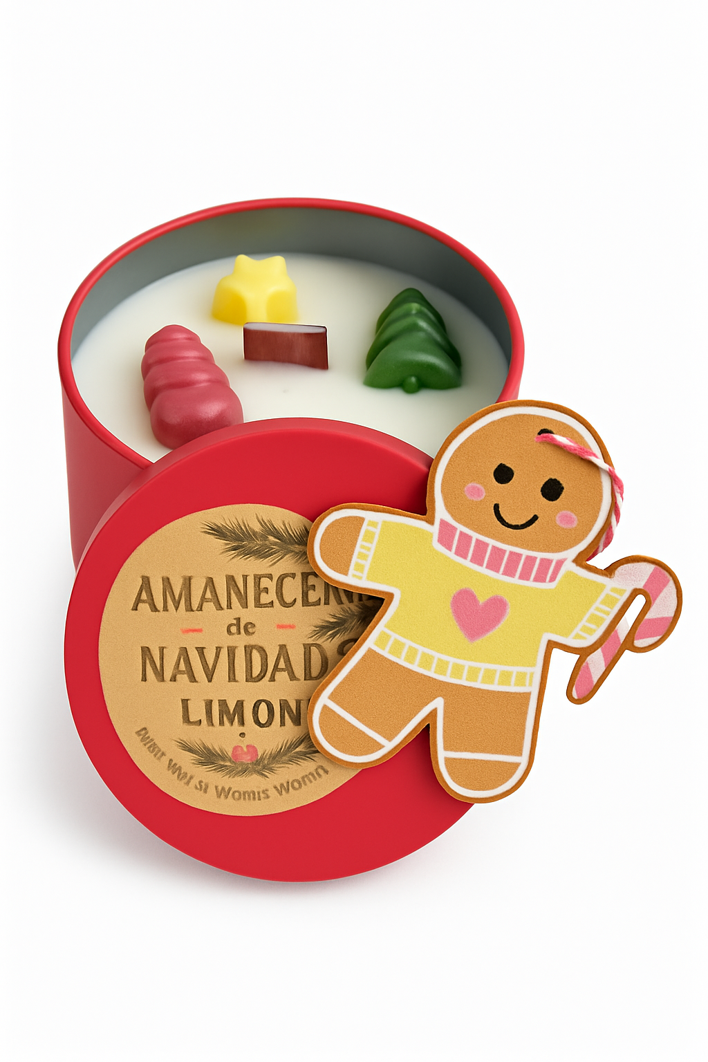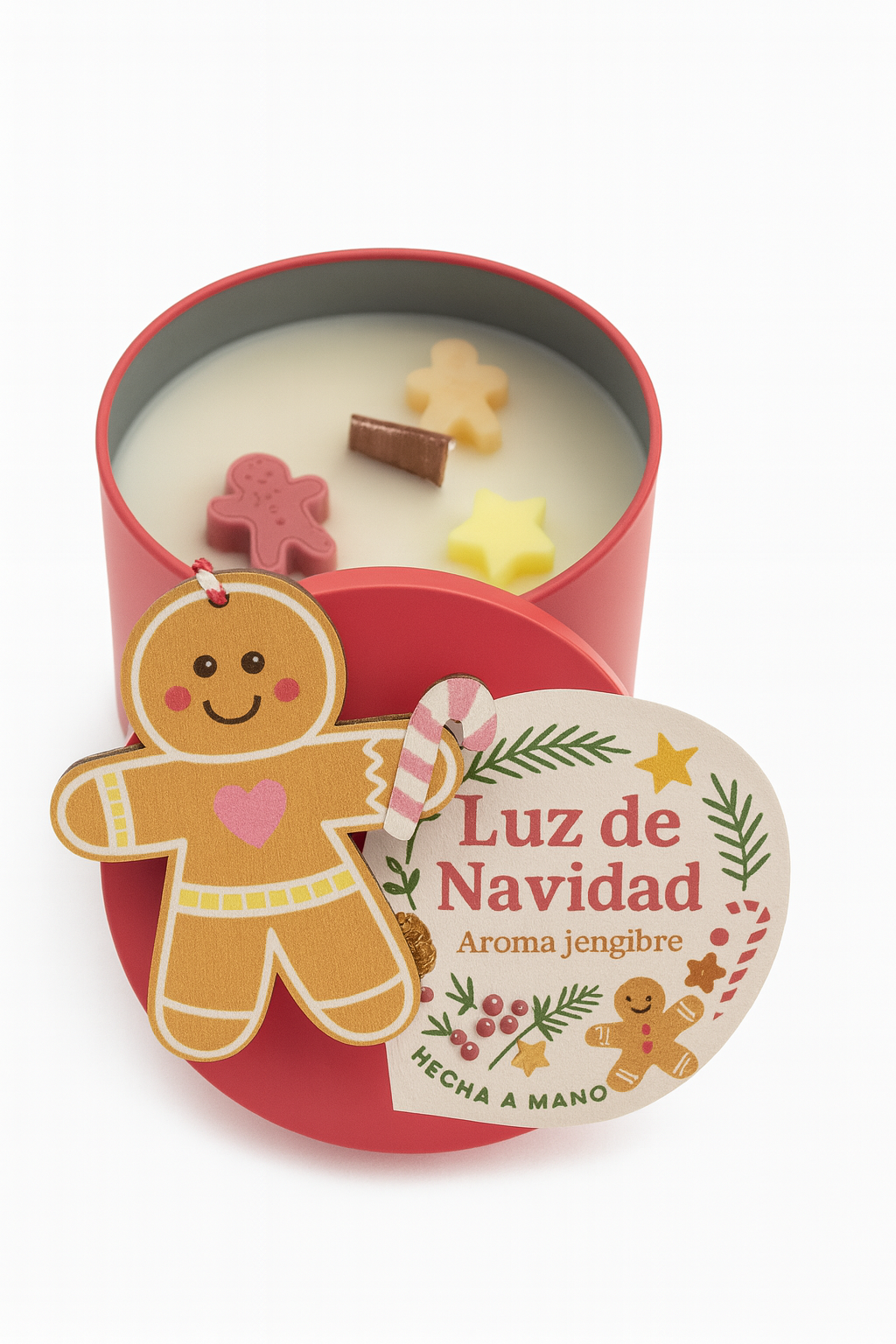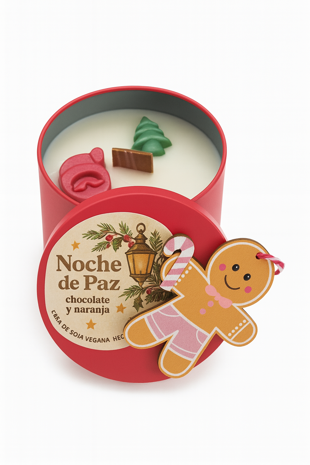 Portavelas Navideño con vela de te hecha a mano con cera de soja y decoración de navidad Esta velita al ser de soja dura mas que las convencionales VEGANAS