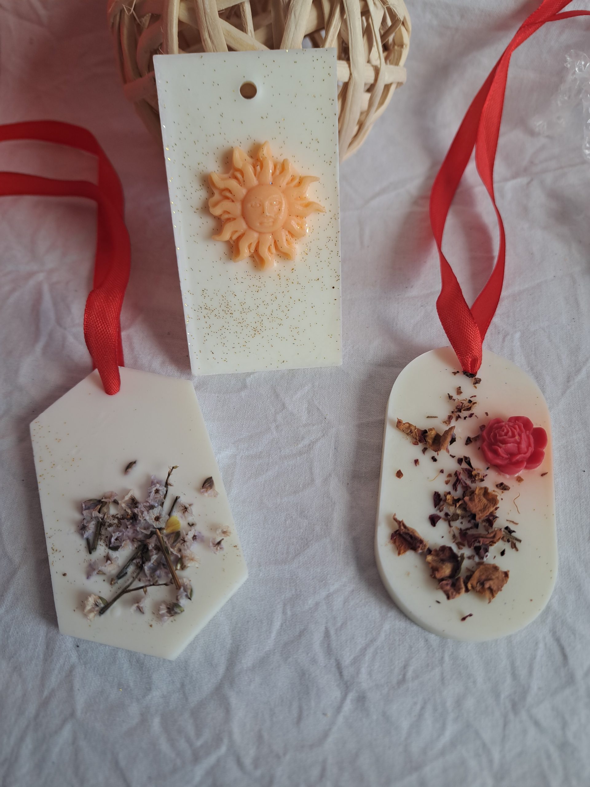 Medallones Aromáticos de Cera de Soja Descubre nuestros medallones aromáticos artesanales, elaborados con cera de soja 100% natural y vegana, infusionados con fragancias naturales que llenarán de aroma y bienestar tus espacios. Perfectos para perfumar cajones, armarios, estanterías o cualquier rincón de tu hogar, cada medallón está hecho a mano con mimo y decorado con flores secas y detalles únicos.