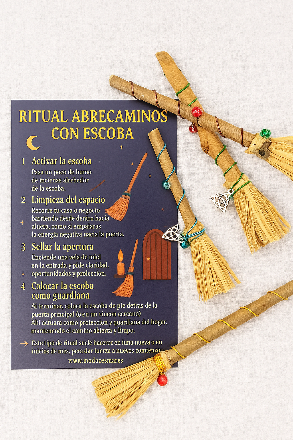 Escoba Abrecaminos hecha a mano con buena vibra para realizar el ritual Pasos: 1. Activar la escoba Pasa un poco de humo de incienso alrededor de la escoba. Mientras lo haces, di: “Con esta escoba limpio y abro mis caminos, … Leer más